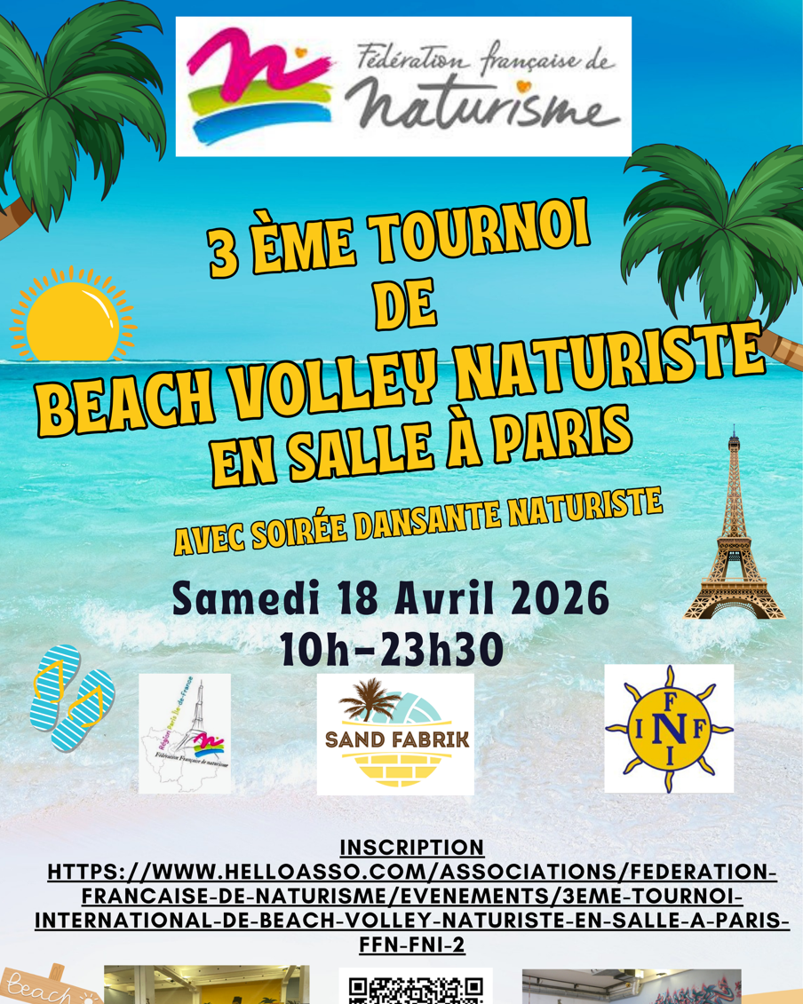 3è tournoi de Beach Volley naturiste, suivi d’une soirée dansante jusqu’à l’aube. Venez nombreux !